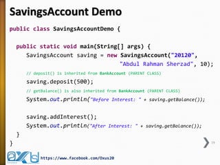 As we have already mentioned in some other languages some entities are objects and some are not. The subclass can add its own fields and methods in addition to the superclass fields and methods. The test program should ask the user the annual interest rate the starting balance and the number of months that have passed since the account was established.